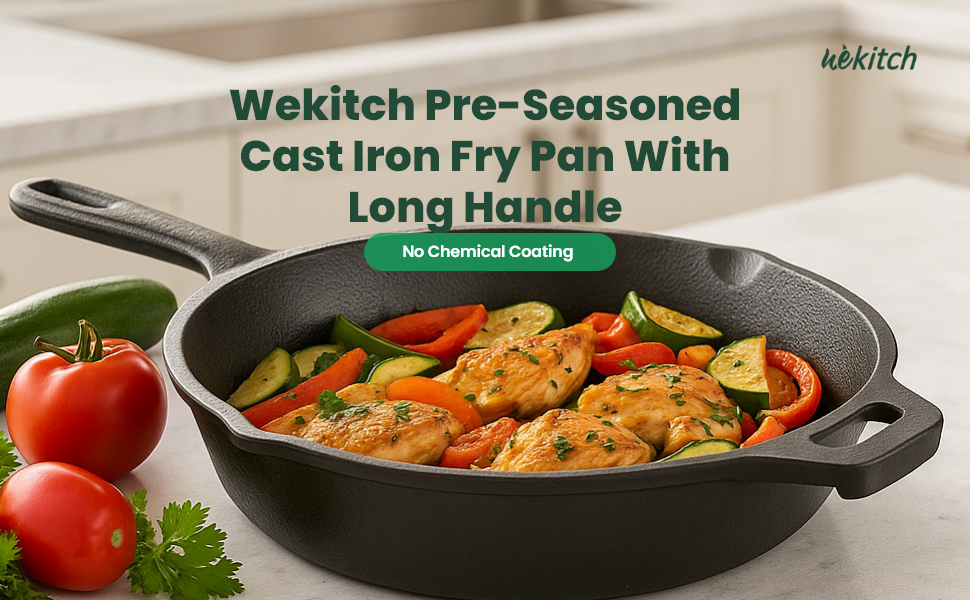 Pre-seasoned for a natural nonstick finish, this cast iron fry pan ensures safe, chemical-free cooking. It locks in flavor, enhances nutrition, and delivers authentic taste for everyday meals effortlessly.