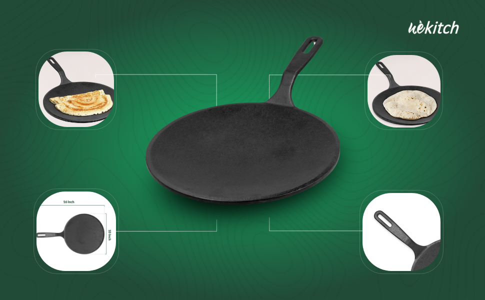 - 🔥 Heavy-duty cast iron tawa for dosa & roti with excellent heat retention and natural nonstick surface for healthy cooking.