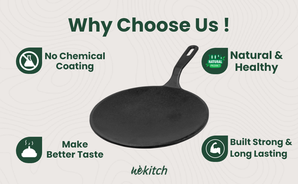 With no chemical coating, this concave cast iron tawa ensures safe and natural cooking. Strongly built to last, it makes food tastier while supporting healthy meals every single day.
