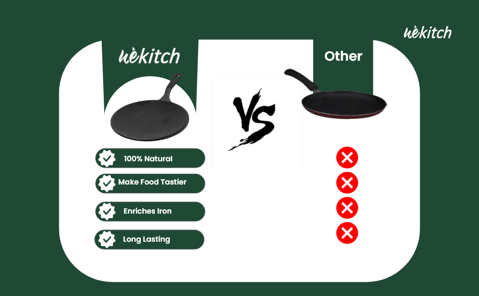 Unlike ordinary pans, this 100% natural concave cast iron tawa enriches food with iron, makes meals tastier, and offers lasting durability, making it the healthier everyday cooking option.